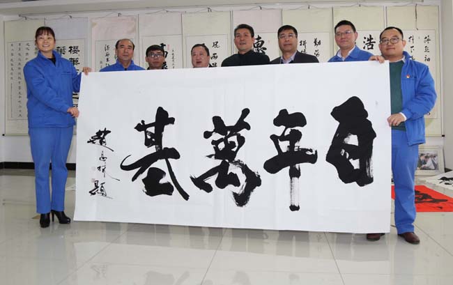 中國書法家協(xié)會會員趙昌林回到了家鄉(xiāng)新安縣,于12月15日到萬基控股集團(tuán)開展書法創(chuàng)作,欣然揮毫潑墨,雄渾瀟灑的書法作品一一躍然紙上。題寫的“百年萬基”四個遒勁大字熠熠生輝,寓意萬基持續(xù)發(fā)展,永續(xù)萬年基業(yè)。