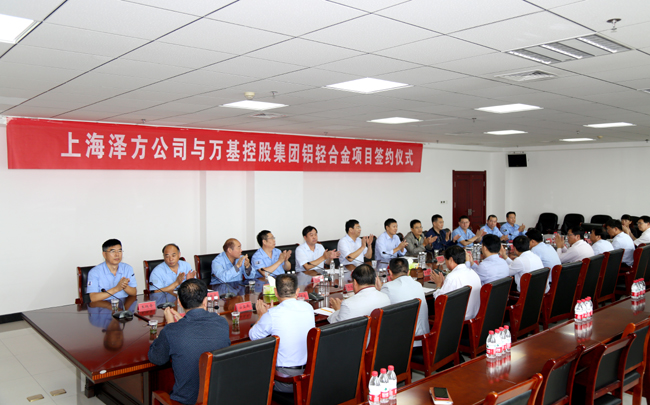 9月30日上午,上海澤方公司與萬基控股集團(tuán)合作的10萬噸鋁輕合金項(xiàng)目簽約儀式在萬基大廈12樓會議室隆重舉行,成功簽約。