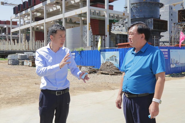 9月6日,中國(guó)農(nóng)業(yè)銀行洛陽(yáng)分行行長(zhǎng)王軍、新安支行行長(zhǎng)楊運(yùn)生一行到2x60萬(wàn)千瓦機(jī)組施工現(xiàn)場(chǎng)調(diào)研項(xiàng)目建設(shè)情況,縣統(tǒng)戰(zhàn)部部長(zhǎng)馬輝,集團(tuán)公司總經(jīng)理郭峰等陪同。