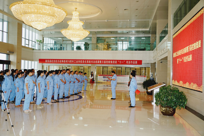 9月22日,在中秋、國(guó)慶雙節(jié)即將到來(lái)之際,由縣委宣傳部、縣書(shū)法家協(xié)會(huì)、縣工信局和集團(tuán)公司工會(huì)聯(lián)合舉辦的大型書(shū)法作品展在萬(wàn)基大廈一樓大廳舉行。140余幅作品掛滿大廳,風(fēng)格各異:有的遒勁有力,深沉大氣;有的如行云流水,一氣哈成;有的龍飛鳳舞,筆走龍蛇;有的妙筆生花,隨心所欲;有的清麗雋秀,如小橋流水……這次舉辦的公司歷來(lái)規(guī)模最大、規(guī)格最高的書(shū)法作品展,吸引許多員工前來(lái)觀賞。