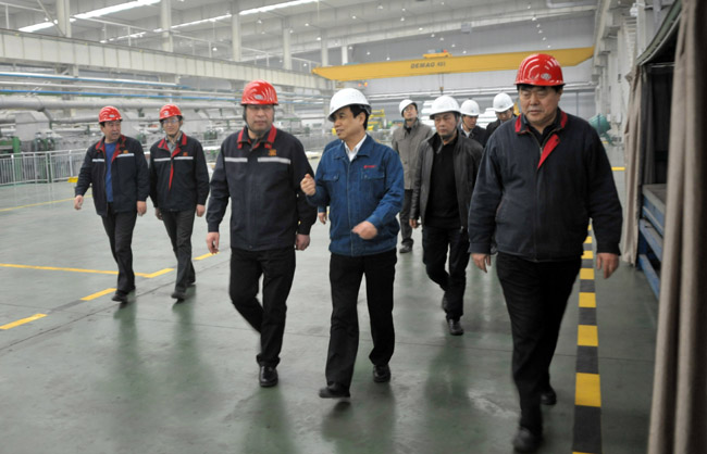 1月26日下午,中信重工機械股份有限公司董事長任沁新等一行6人到我公司實地考察萬基鋁加工冷軋、鋁箔、精整、分切生產(chǎn)線,李躍民董事長、郭峰總經(jīng)理等公司領(lǐng)導(dǎo)陪同考察,并出席了業(yè)務(wù)洽談會。