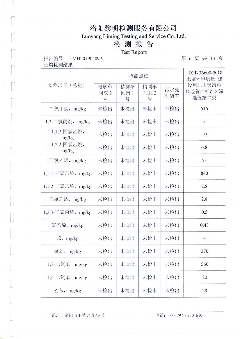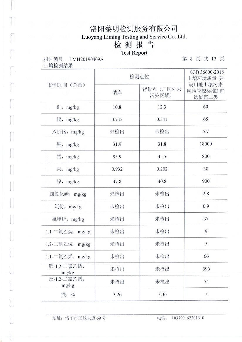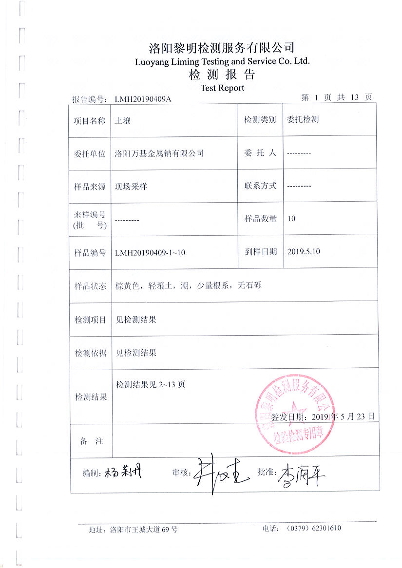 洛陽萬基金屬鈉公司土壤檢測(cè)報(bào)告公示