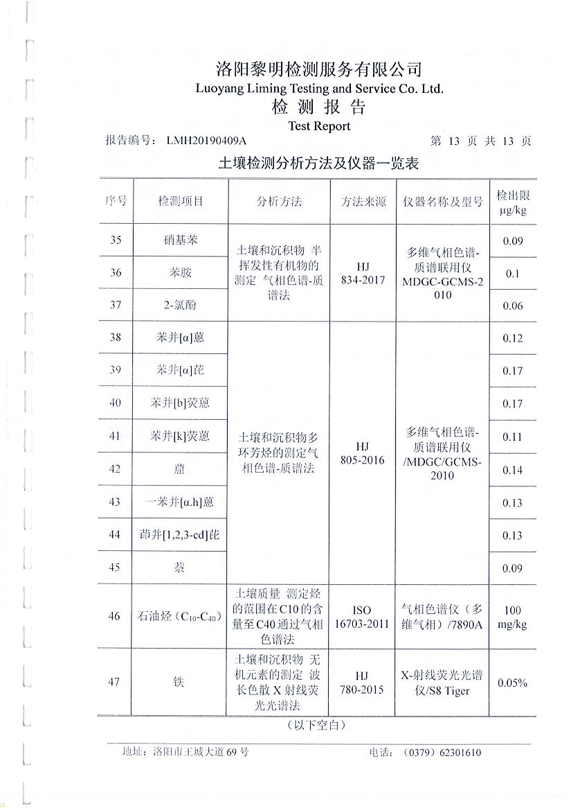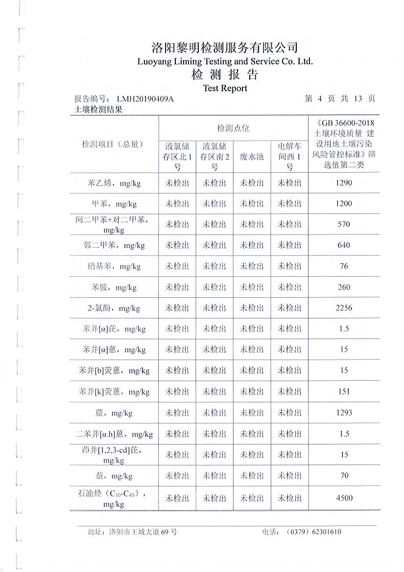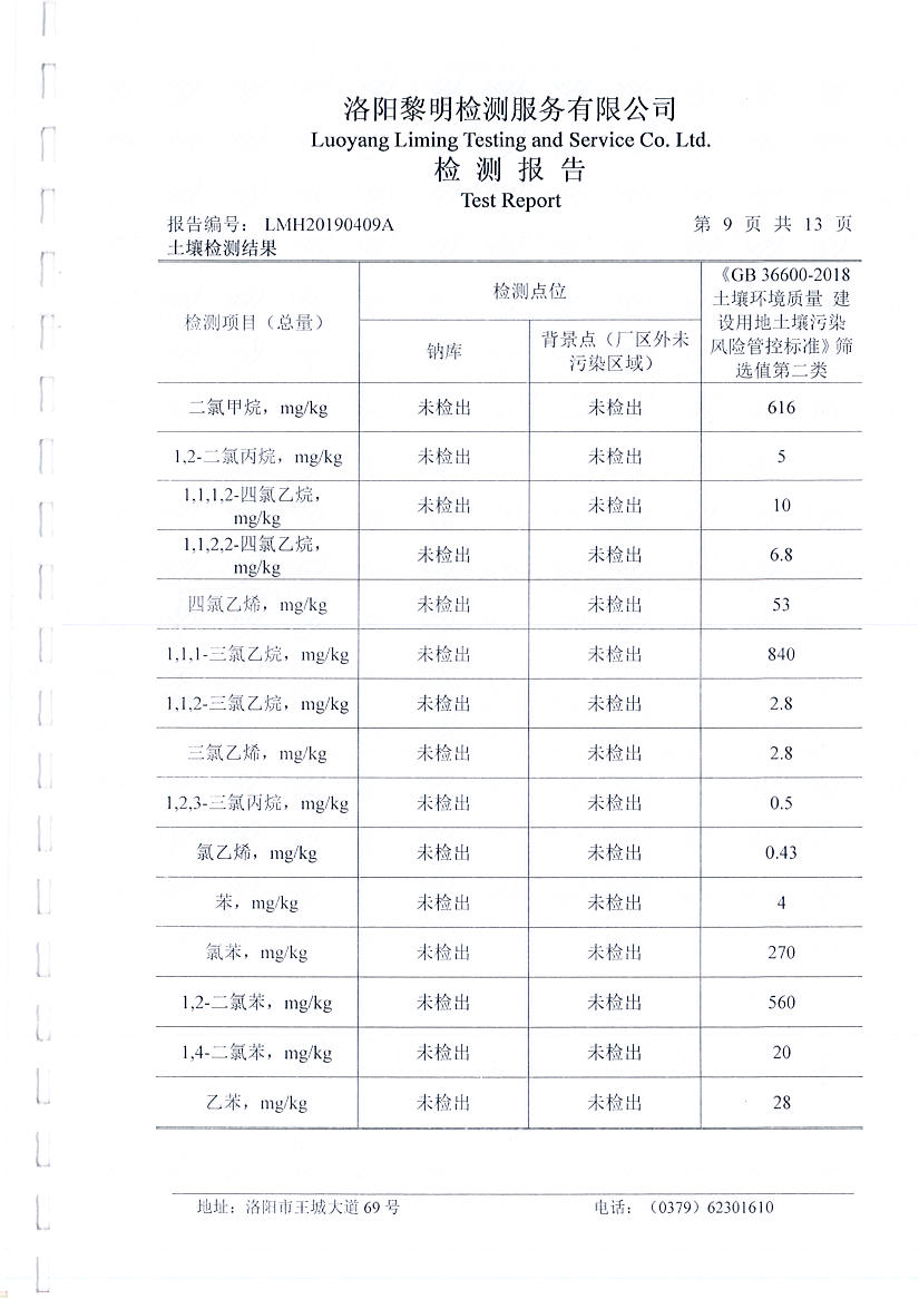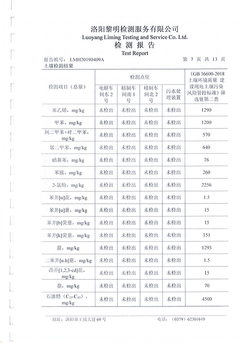 洛陽萬基金屬鈉公司土壤檢測(cè)報(bào)告公示