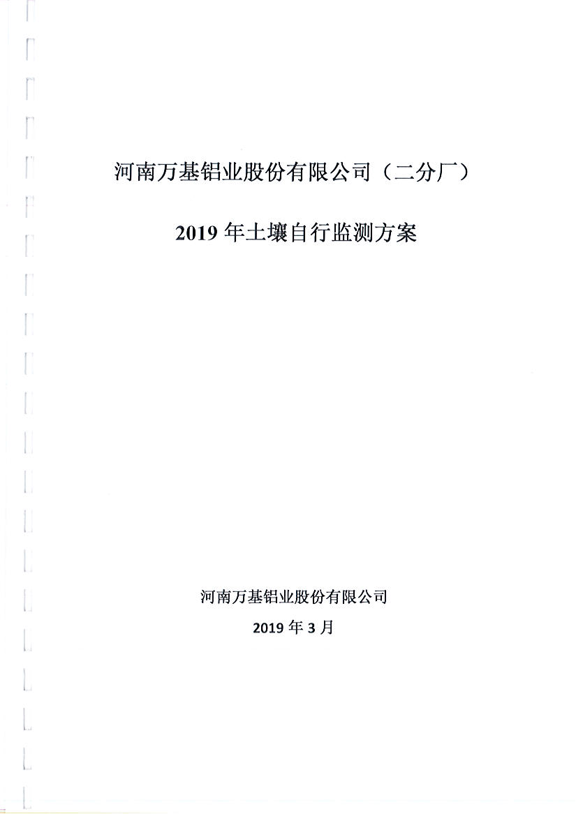 河南萬基鋁業(yè)股份有限公司(二分廠)2019土壤自行檢測方案