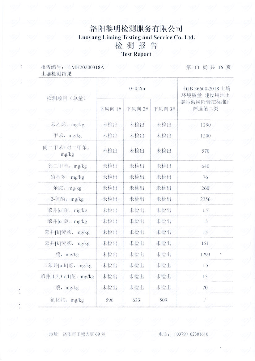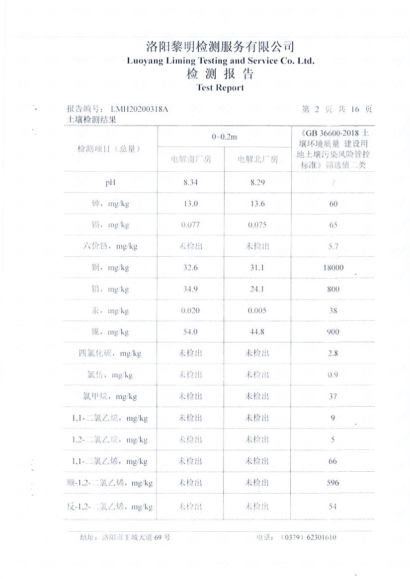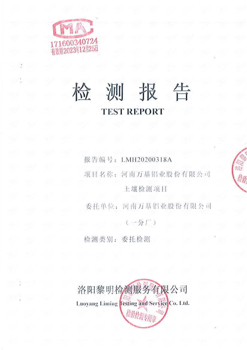 河南萬基鋁業(yè)股份有限公司(一分廠)2020土壤自行檢測報告