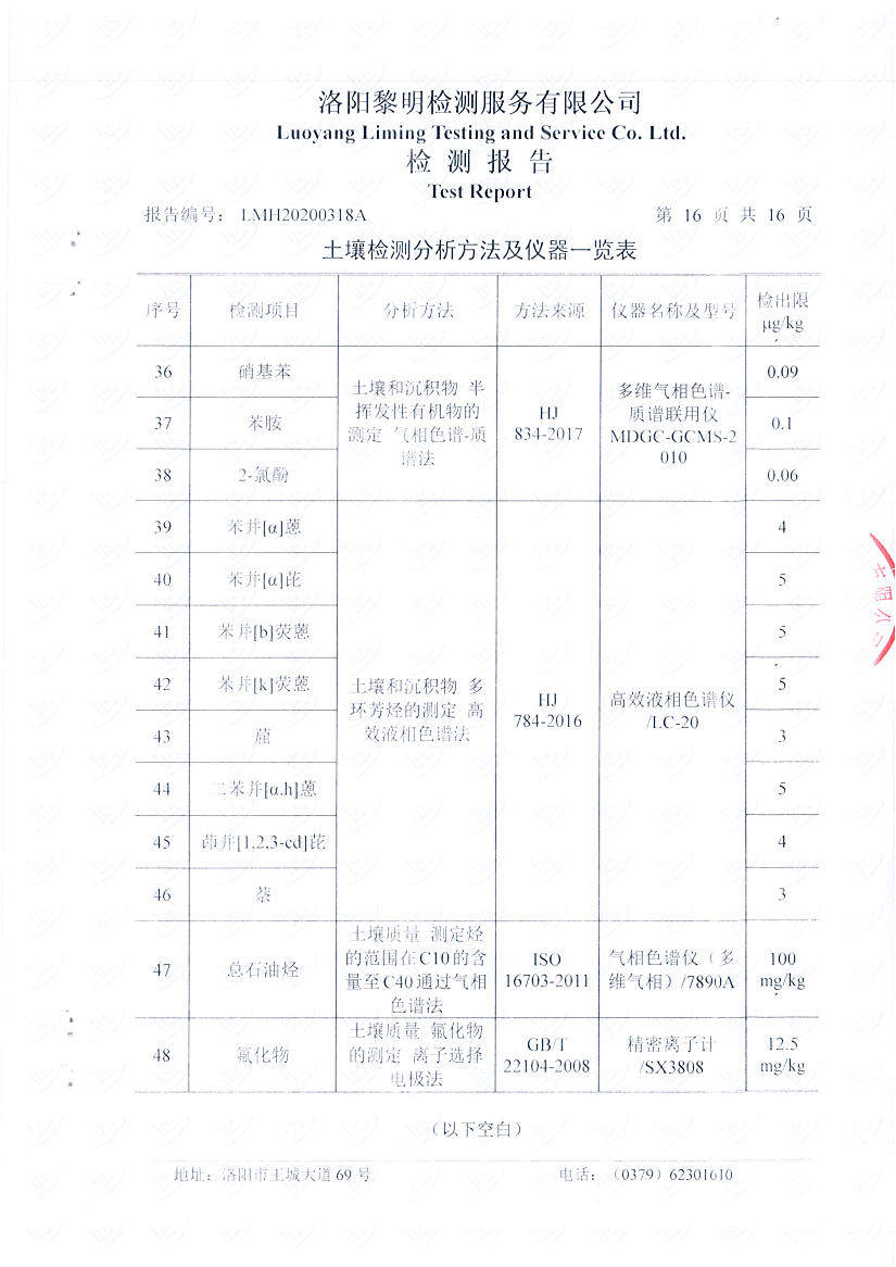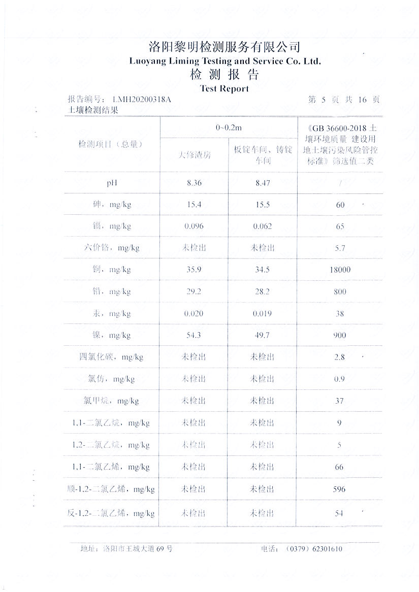 洛陽萬基鋁加工有限公司2019年土壤自行檢測方案