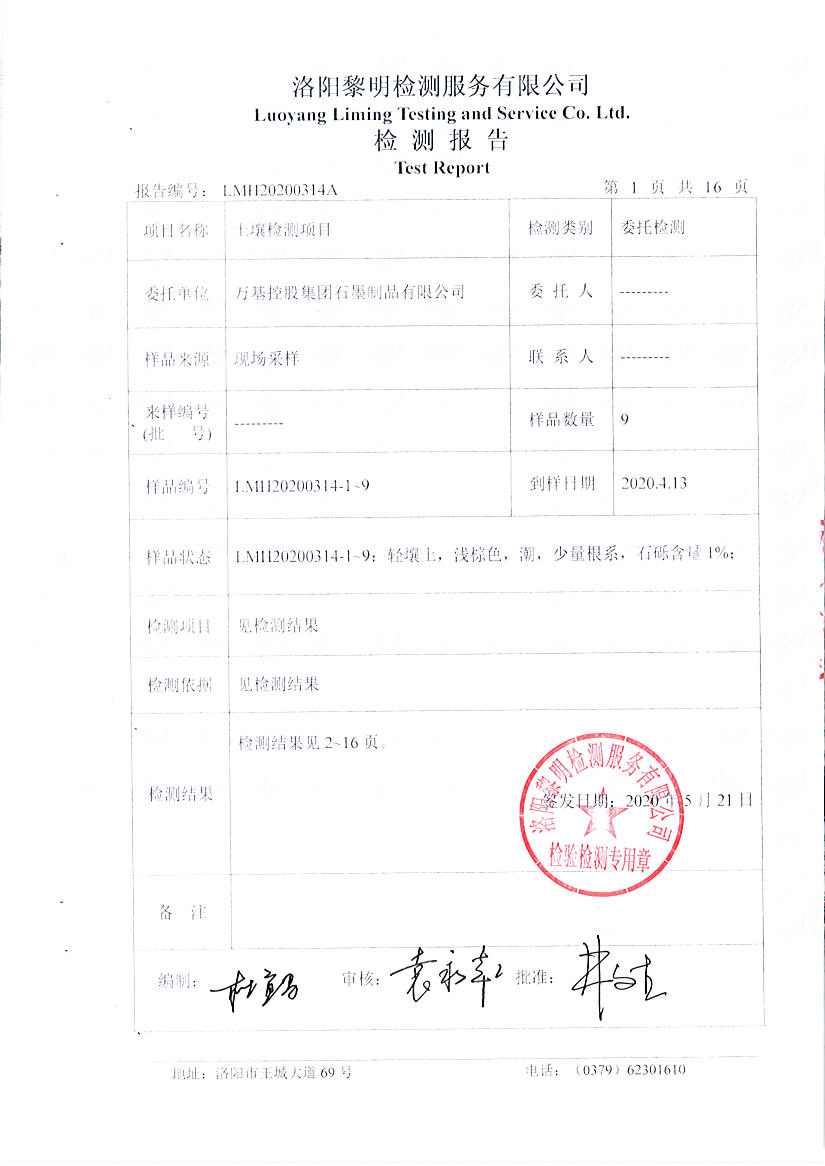 萬基控股集團石墨制品有限公司2020土壤自行檢測報告