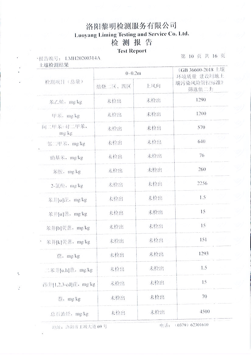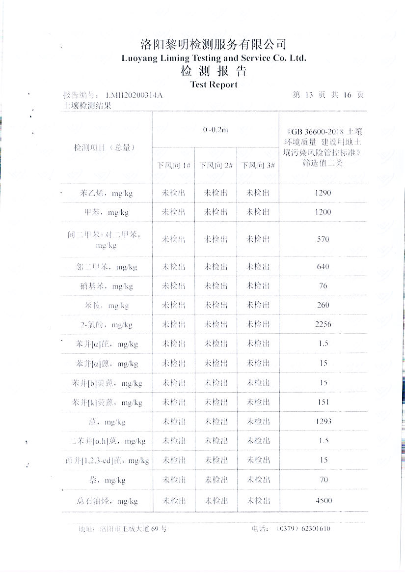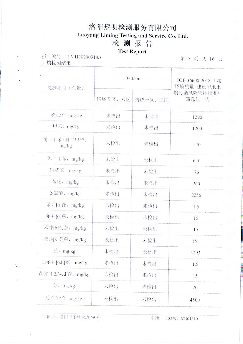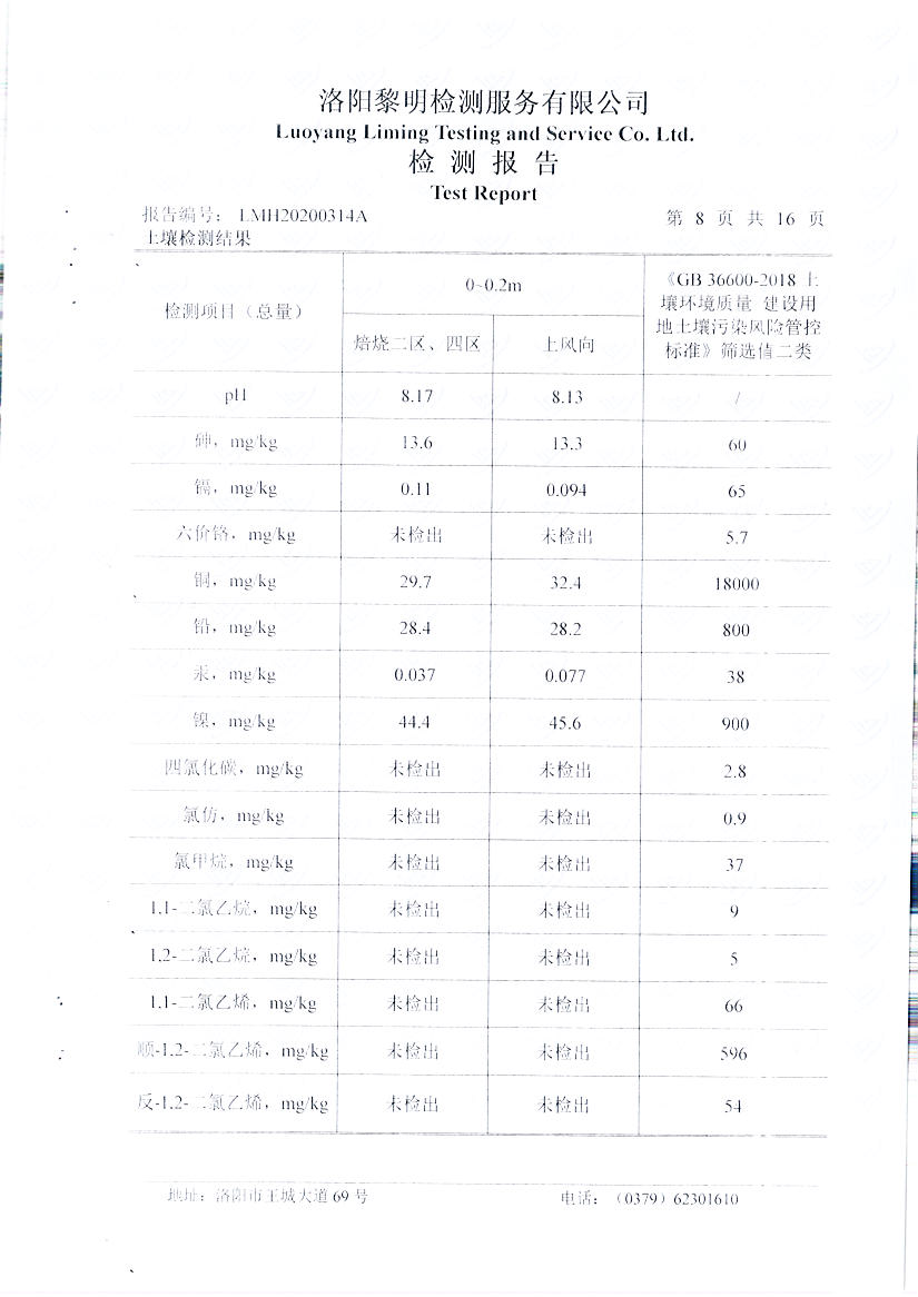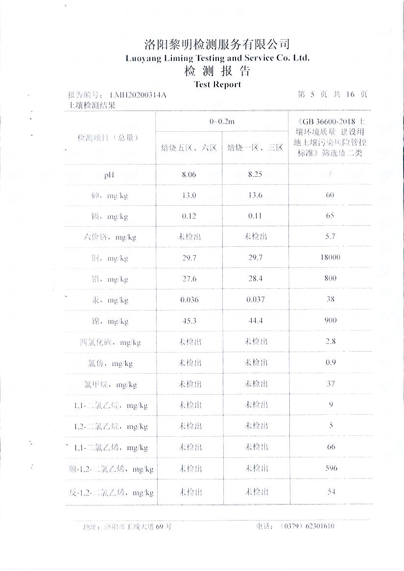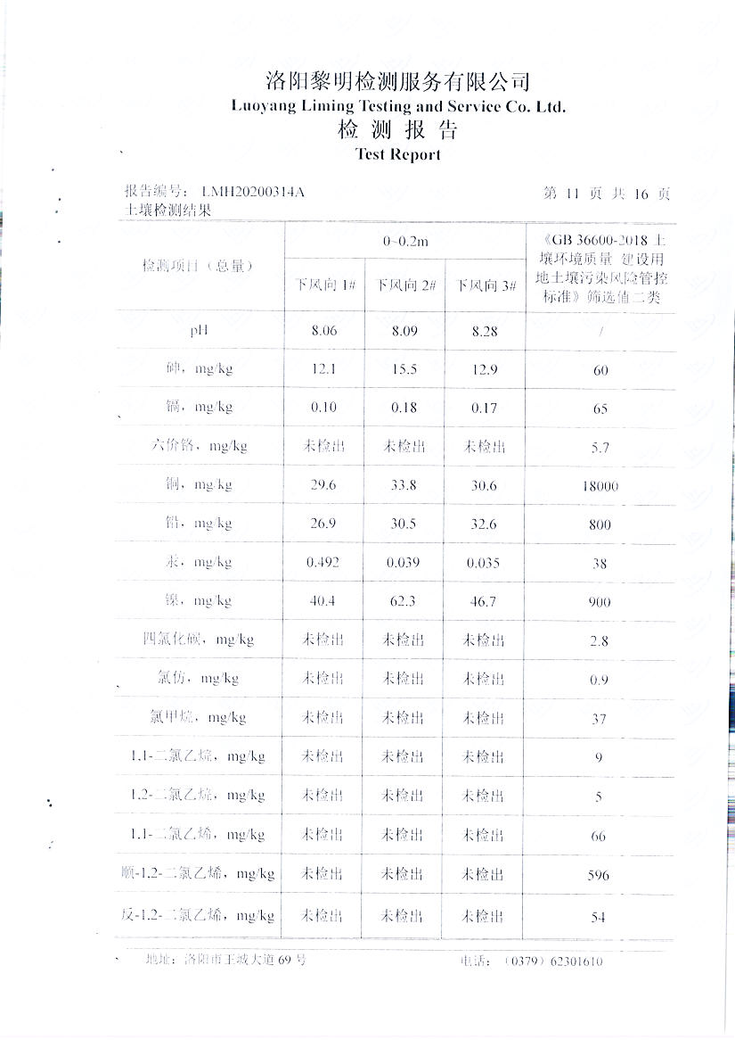 洛陽萬基鋁加工有限公司2019年土壤自行檢測方案