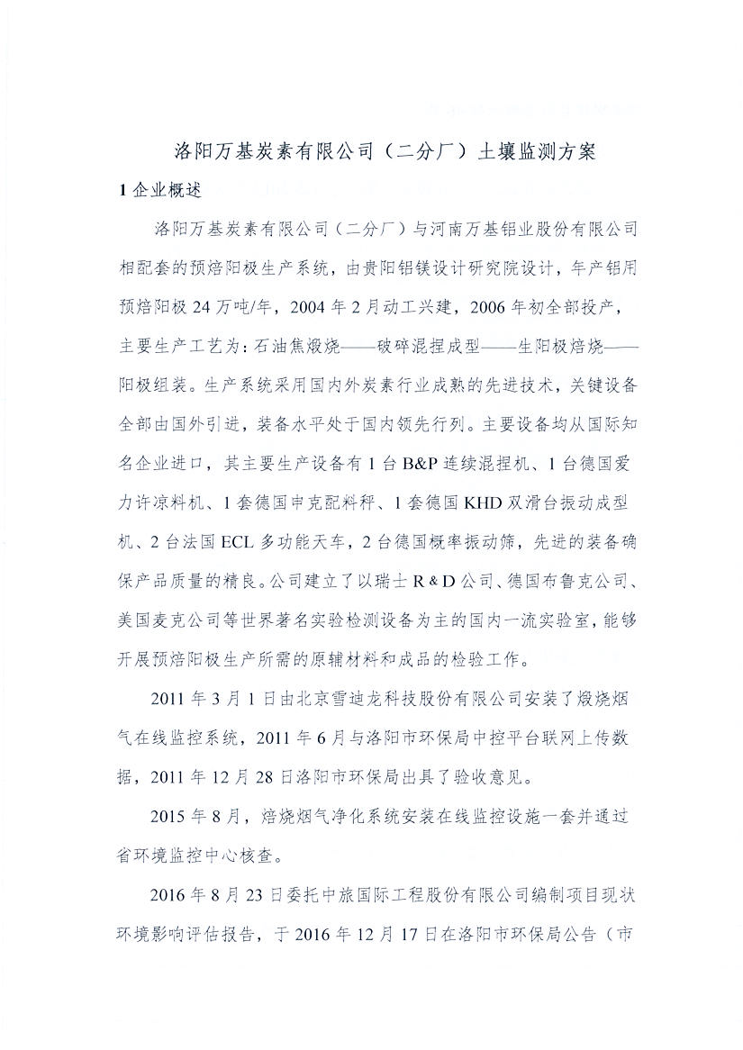 洛陽萬基炭素有限公司(二分廠)2020土壤自行監(jiān)測方案