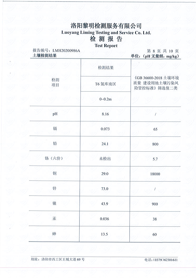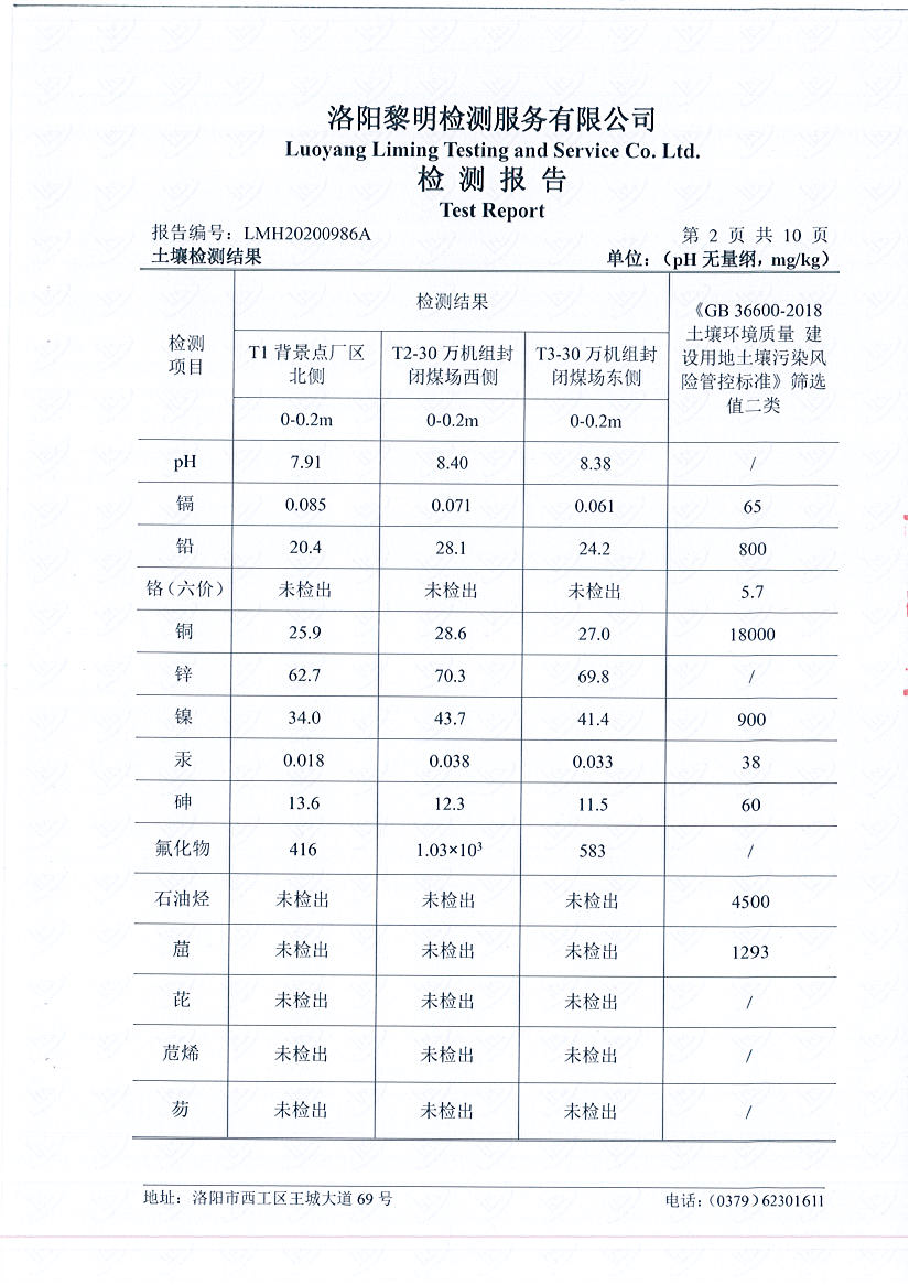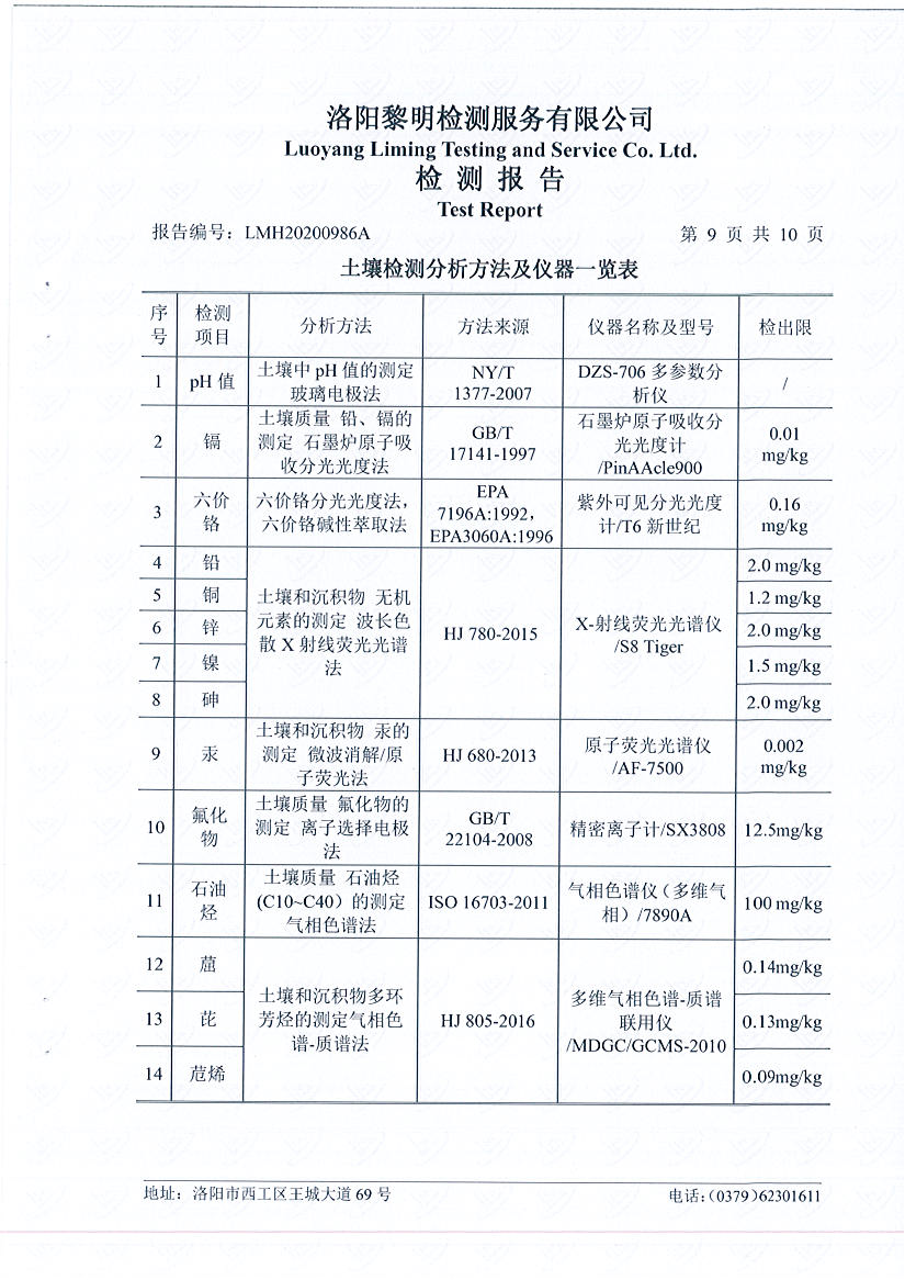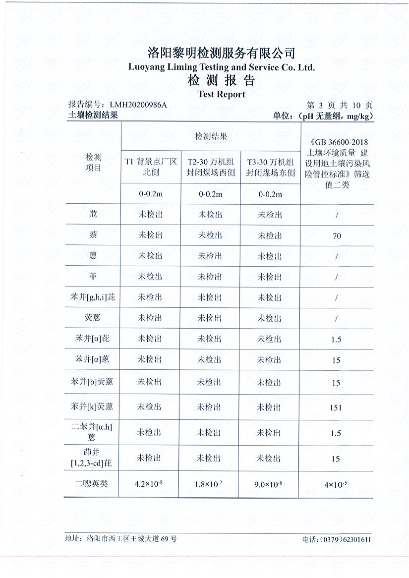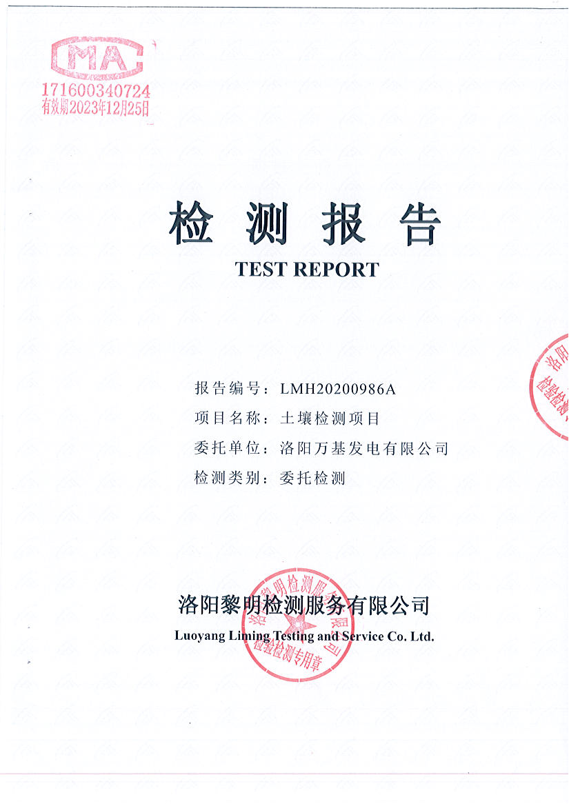 洛陽(yáng)萬(wàn)基發(fā)電土壤檢測(cè)報(bào)告